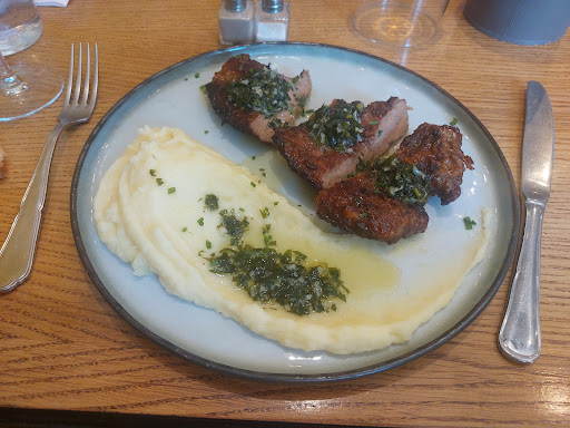Read moreTrès bons plats dans ce restaurant, dont les produits viennent des commerçants locaux. Une salle agréable, lumineuse (en tout cas celle du bas, je n'ai pas vu la salle du haut). Service bien réalisé et la patronne est sympathique. Tarifs raisonnables pour la quantité et la bonne qualité servie (formule à 27 €, ou une formule à 21 € avec entrée-plat ou plat-dessert). Personnellement je me suis régalé en prenant un velouté de poireau, un sauté de porc avec du riz (désolé je ne me rappelle plus tout ce qui accompagnait ou relevait ces 2 plats mais c'était savoureux !) et un tiramisu myrtille. J'ai apprécié également l'apéritif et mon verre de vin. Je recommande...