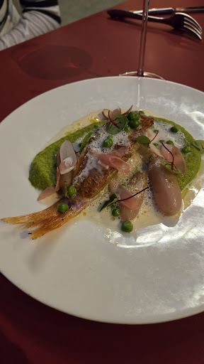 Food To pre-start they gave us some sort of cream and a potato inside. Starters where shrimps on a base of ravioli on top of a meat sauce. And poached egg with green asparagus and again a meat sauce. They were well cooked but portions kind of small. We noticed thevsauce in both dishes was almost the same. For mains we got seabass and roasted rouled beef. Fish was lacking salt and spices and meat was very nicely cooked. Sides where exactly the same for both dishes. Roasted vegetables. Again the sauce of both was almost the same. Dessert was a fried bread with caramelized pinneaple and a creamy foam of goat cheese, honey and topped with thin sliced vegetables, yes vegetables. This one was a surprise for us, in terms of freshness taste and originality. Wine was from the Cote du Rhone and was very good. Overall, we were expecting a bit more giving the prices and the quality of the...