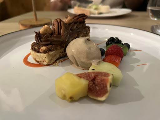 For dessert, I had a delightful cheese selection, while my husband chose a decadent chocolate ice cream paired with a chocolate nut bar. To top it all off, we enjoyed a unique wasabi macaron, which added an intriguing twist to our sweet ending.