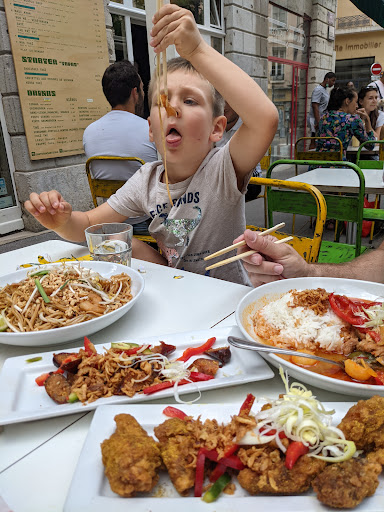 decent Asian inspired location with a small interior. We found the dishes to be on the bland side and not very flavorful. There was little to no spice and felt like everything lacked a little something. We couldn’t really taste anything other than salt and a little bit of pepper. Found ourselves adding an immense amount of sriracha just to add flavor to the otherwise, somewhat generous portions. The menu is definitely Westernized and adapted to the French palate. Everything else was okay, nothing great, nothing bad. Service was average and ambiance lacking. Would consider another visit in the future, but there are much better options in the area that don’t require you to use an entire bottle of hot sauce just to add a little flavor...