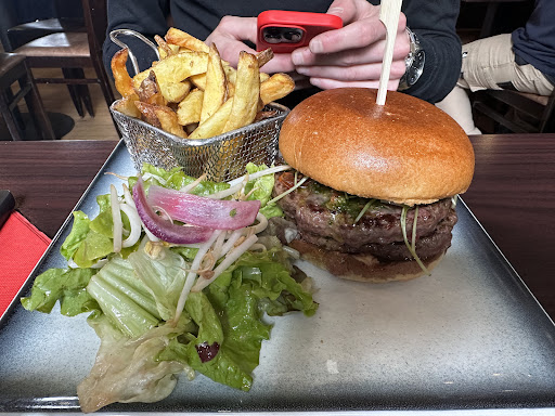 Le Burger savoyard a Ă©tĂ© une dĂ©ception pour moi, dĂ©jĂ car obligĂ© de renvoyer en cuisine puisque ma demande n'avait pas Ă©tĂ© prise en compte, le steak Ă©tait cuit selon ma demande mais assez tiĂšde et une tranche de bacon maigrichonne se cachait dessous. Le fromage mĂȘme pas fondu, bref, je suis sur que d'autres plats sont plus judicieux Ă choisir dans cet Ă©tablissement. Pas de sauce dans le burger ou alors elle s'est fait trop discrĂšte. Seul point positif : le pain rustique Ă©tait excellent !