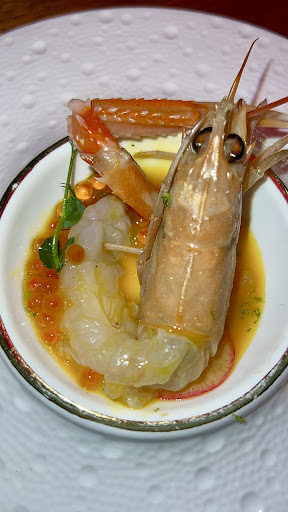 Service & présentation Certaines présentations manquent de soin. La brochette de crevettes grillées, par exemple, n’était pas servie sur une brochette : il s’agissait simplement de deux crevettes entières frites dans l’huile, sans rince-doigt proposé. Cela oblige à les décortiquer à la main, ce qui n’est pas idéal pour un restaurant de ce standing.