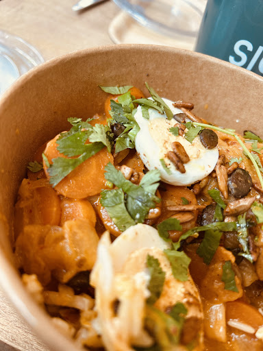 Read moreSur la cuisine et la qualité des ingrédients, rien à dire pour le prix, je me suis resservi 2 fois (salade thaï et bowl été). Pas assez de protéine cependant (poulet rÎti). Le serveur s'est trompé les 2 fois, une fois trop de sésame (cf photo) et une fois servi dans un bol en carton au lieu d'un bol vaisselle. Pas de service à table dans ce restaurant, levez-vous et allez chercher. Aussi je ne reviendrai pas car le serveur est désagréable avec les clients qui n'ont pas commandé en avance et/ou qui ne connaissent pas le concept. Manque de respect par ce serveur pour la clientÚle. Il n'a pas pris la peine de m'expliquer les options, parle trÚs vite, alors que j'étais le seul client, par flemme d'expliquer. Les 2 collÚgues en service m'ont également jugé sur mon apparence. Accueil des clients (et des livreurs ubereats au passage) à ...