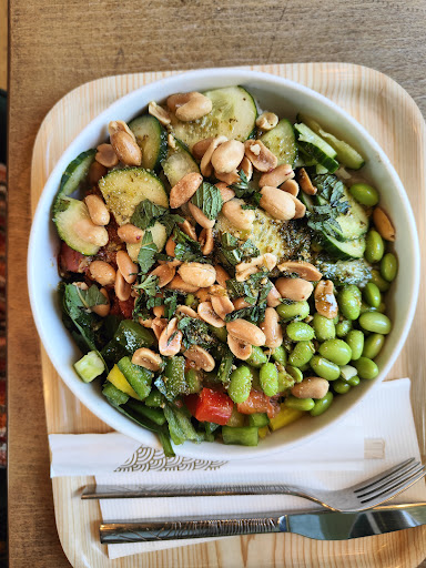 Read moreSur la cuisine et la qualité des ingrédients, rien à dire pour le prix, je me suis resservi 2 fois (salade thaï et bowl été). Pas assez de protéine cependant (poulet rÎti). Le serveur s'est trompé les 2 fois, une fois trop de sésame (cf photo) et une fois servi dans un bol en carton au lieu d'un bol vaisselle. Pas de service à table dans ce restaurant, levez-vous et allez chercher. Aussi je ne reviendrai pas car le serveur est désagréable avec les clients qui n'ont pas commandé en avance et/ou qui ne connaissent pas le concept. Manque de respect par ce serveur pour la clientÚle. Il n'a pas pris la peine de m'expliquer les options, parle trÚs vite, alors que j'étais le seul client, par flemme d'expliquer. Les 2 collÚgues en service m'ont également jugé sur mon apparence. Accueil des clients (et des livreurs ubereats au passage) à ...