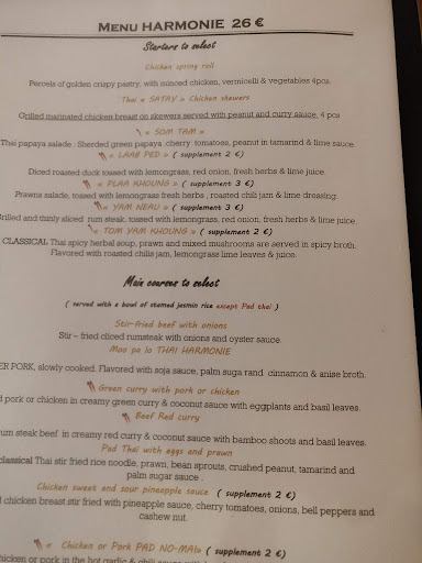 Read moreSi j'avais pu mettre 0 étoile, ça aurait été sans hésitation. Commandé grâce à Deliveroo, cette expérience fut désastreuse. J'ai commandé une salade au poulet à 13€ AVEC vermicelles de soja comme indiqué sur le site du restaurant, et je me suis retrouvé avec une salade au bœuf sans rien hormis des oignons rouges en abondance à vous retourner l'estomac. Ensuite les brochettes de poulet n'avaient pas la sauce cacahuète comme indiquée sur Deliveroo, ce qui aurait rendu le poulet beaucoup moins sec. Juste une maaaagnifique décoration en carotte et radis flétris immangeable... Pour finir la soupe lait de coco/poulet faisait la taille d'un café espresso.. Avec deux microscopiques morceaux de poulet ! 9€ pour une soupe thaï espresso, je ne pensais pas être à Disney. Et le tout pour 44€.. Nous avions choisi ce restaurant au vu des avis internet, mais je pense que la qualité n'est pas du tout au rendez-vous à emporter. Au final quand nous avons lu les avis en profondeur, je confirme, c'est une catastrophe. À éviter, il y a de bien meilleurs restaurant...