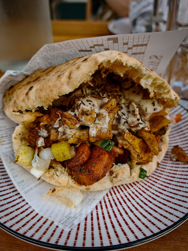 Read moreLe concept de TODA est intéressant : remplir soi-même son pain pita avec les garnitures et sauces de son choix, ça change et sur le principe c’est plutôt séduisant. Les produits ne sont plutôt bons et bien préparés et les frites sont même très bonnes.