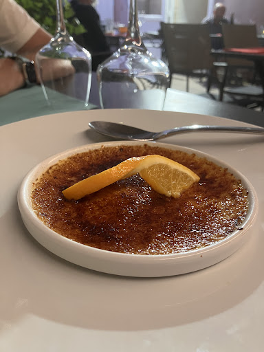 L'un des rares restaurants ouverts en ce dimanche midi du 11 décembre où nous avons été enchanté d'y déjeuner ; accueil agréable au téléphone pour réserver et autant à notre arrivée sur place ,après nous avoir installé à notre table dans une petite salle joliment décorée, nous avons commencé par prendre un apéritif accompagné par une très bonne tapenade faite maison , le choix pour le repas s'est tourné sur une entrée d'escargots savoureuse et à la suite, un rouget ,arrivé le matin même , accompagné de légumes et d'une sauce au chorizo, plat très savoureux ; l'autre choix fut d'une souris d'agneau goûteuse sauce au thym accompagnée de légumes et d'un gratin de pommes de terre, plat très savoureux aussi et pour terminer notre repas, un divin fondant avec sa crème anglaise au curry, mariage fort réussi et d'une poire pochée au vin rouge accompagné de son crumble. je vous recommande vivement ce...