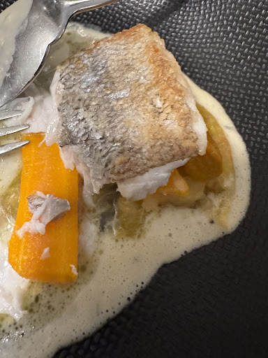 We stopped overnight on our way north and were warmly welcomed. Our room was on the top floor (no lift) . The room was a little old fashioned but spotlessly clean . I immediately turned off all heating on arrival but it stayed warm all night and we could not open the windows because we had our cats with us. Comfortable beds.|We had the Menu d'Heliose for dinner and it was really good - it started with some tasters and then I had a salad of smoked trout followed by sea bream with a parsnip risotto. The owner recommended a really good bottle of Macon Bussière white wine.|Breakfast was good , I liked the lemon drizzle cake. Friendly efficient service.|It is situated beside a train line and a busy road so if the windows were open this might be a problem but we didn't here any noise with the closed windows.|I would stop here again - 257€ for DBB is reasonable.|Black mark to Trip Advisor for putting a picture of the Abbey instead...