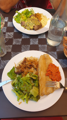 Nous avons entendu parler de cet endroit qui fait ces plats à travers des produits bio. Malgré que le restaurant est proche de la route ...le côté patio permet de vite s en écarter et de l oublier. Le lieu est en bord d eau composé à l intérieur de bois et de tableaux africains. Il y aussi quelques autres petits livres qui arpentent les murs. L accueil est très sympathique, le service souriant et assez rapide au vu du nombre de client. Il est préférable de réserver à l avance pour être sûr d avoir une table. Les plats sont fait avec des bons produits ce qui permet de satisfaire même des papilles difficiles. La simplicité de présentation était de mise dans l entree et le plat chaud qui attirait moins l œil que le dessert mais qui était satisfaisant gustativement parlant. Le choix des vins pour accompagner est bon. Merci...