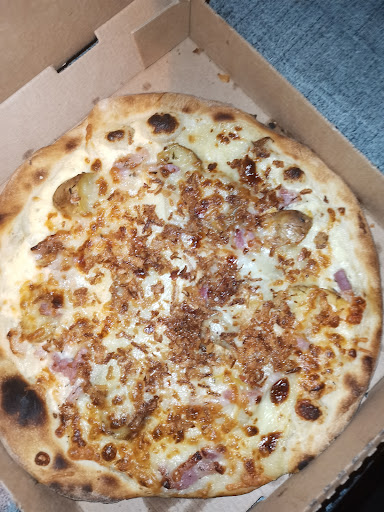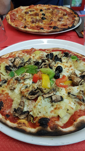 Epouvantable....Je commande des pizzas à emporter début juillet pour 18h30, heure la plus hâtive possible, elles sont prêtes dès 18h15, tant mieux me dis-je..... En arrivant chez moi 10 minutes plus tard, j'ouvre la première boite, les rebords sont très fins ce qui laisse supposer une pâte précuite, c'est une technique qui se conçoit pour gagner du temps au moment du service mais ce n'est pas celle que je préfère, d'autant qu'en tâtant ces rebords je me rends compte qu'ils sont tout sec, cependant quand la garniture vaut le coup je peux en faire abstraction.... la tomate est rouge foncé et sèche, comme une sorte de concentré....De plus quand je commence à couper des parts, avec un bon couteau à dents (style couteau à steack) j'ai carrément du mal à couper la pâte qui est tout aussi sèche en son centre et quand je mets cela en bouche je me rends compte que la pizza est très sèche et craquante (pas croustillante), presque difficile à mâcher...et franchement pas très goûtue, les olives dénoyautées sont infâme, le fromage insipide..... Je me rends compte que beaucoup d'avis très positifs sont plutôt anciens (entre 3 et 7 ans) et il est très facile de créer des avis factices plus récents pour encenser...
