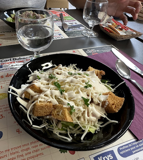 Vraiment très sympathique Arrivée à la Fresnaye sur Chedouet pour le travail, Christelle de l'agence postale m'a recommandé ce bar restaurant pour ma pause déjeuner. Un accueil vraiment très agréable par le patron Mr Patras comme si vous étiez un habitué. Une salle claire, propre et bien agencé pour le côté bar ainsi que le restaurant. Menu à 12.90 avec entrée, plat et dessert. Rien à dire, présentation, quantité et qualité. J'aurai juste voulu les frites un peu plus croustillantes mais sinon frite maison. Je vous recommande de vous y arrêter pour une pause et de profiter aussi de la belle région autour avec ses forêts magnifiques. Un très beau cadre pour une...