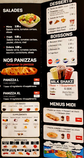 Read moreTrès déçue. Nous avons commandé sur Just eat. Nous mettons quand même 3 étoiles car c'était bon. Nous avons commandé deux panizzas (base crème fraiche pour une et base tomate pour l'autre), deux milkshake vanille fraise et un coca classic et un sprite. Et le tout pour 40€. Nous avons reçu 1 panizzas base curry..., un milkshake vanille fraise et un autre vanille choco, deux coca zero... bref pas du tout ce que nous avons commandé. Nous avons appelé, la personne au téléphone nous demande si on est sur car il est certain d'avoir sorti nos panizzas...Finalement 1h après nous recevons une autre panizza...Bref merci de revoir vos services...