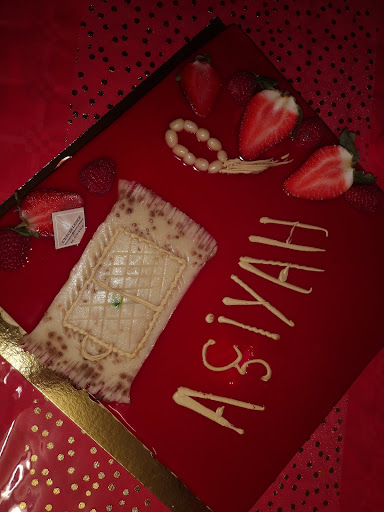 j'ai pris une pâtisserie chez vous (suite au nombreux avis 110 avis et 4 étoiles), un entremet mousse pistache et mousse framboise pour 15 personnes. Que dire j'ai voulu marquer le coup avec une pâtisserie de chez un artisan pâtissier comme vous le dites vous-mêmes. Esthétiquement, il passait, l'écriture était brouillon pour ma part car ce n'est pas écrit comme le font certains pâtissiers (écriture fine et belle) bref pas grave, j'avais dit de mettre 7 ans dessus, il n'y était pas mais encore une fois ce n'est pas grave, j'avais demandé un tapis de prière et une soubHa (chapelet) en déco, je trouve vraiment bof, mais pas grave je me suis dit ce n'est peut être pas son fort. Après mon acompte le jour de la commande, j'ai essayé de vous appeler mainte fois, car je craignais une chose : que la pistache n'est autre que de l'arôme et non de la vraie pistache, en vain après une dizaine d'appels personne a décroché. Tant pis je me suis dit en espérant qu'ils aient mis un peu de pistache. Bref je le récupère avec le constat qu'une lettre a été raté mais rattrapé (merci mais le soucis du détail pour un artisan doit être de rigueur et ne pas attendre que le client le fasse remarquer encore une fois pas grave), alors gustativement 1/20, il était vraiment pas bon, et pour cause, la pistache et ce que je craignais était fait que d'arôme (dosé à fond donc mal de tête..) et du colorant, à ce compte là on appelle pas mousse à la pistache mais à l'arôme pistache, car dedans il n'y a pas de pistache. Franchement déçue d'une force, la plupart (à l'exception d'un enfant) n'a pas aimé votre gâteau. L'équilibre framboise et pistache n'était pas là, framboise une fine couche et la pistache une grande épaisseur (car au vu du goût la framboise a été fait avec de la framboise. et la génoise était sèche et un peu trop présente en bouche.)