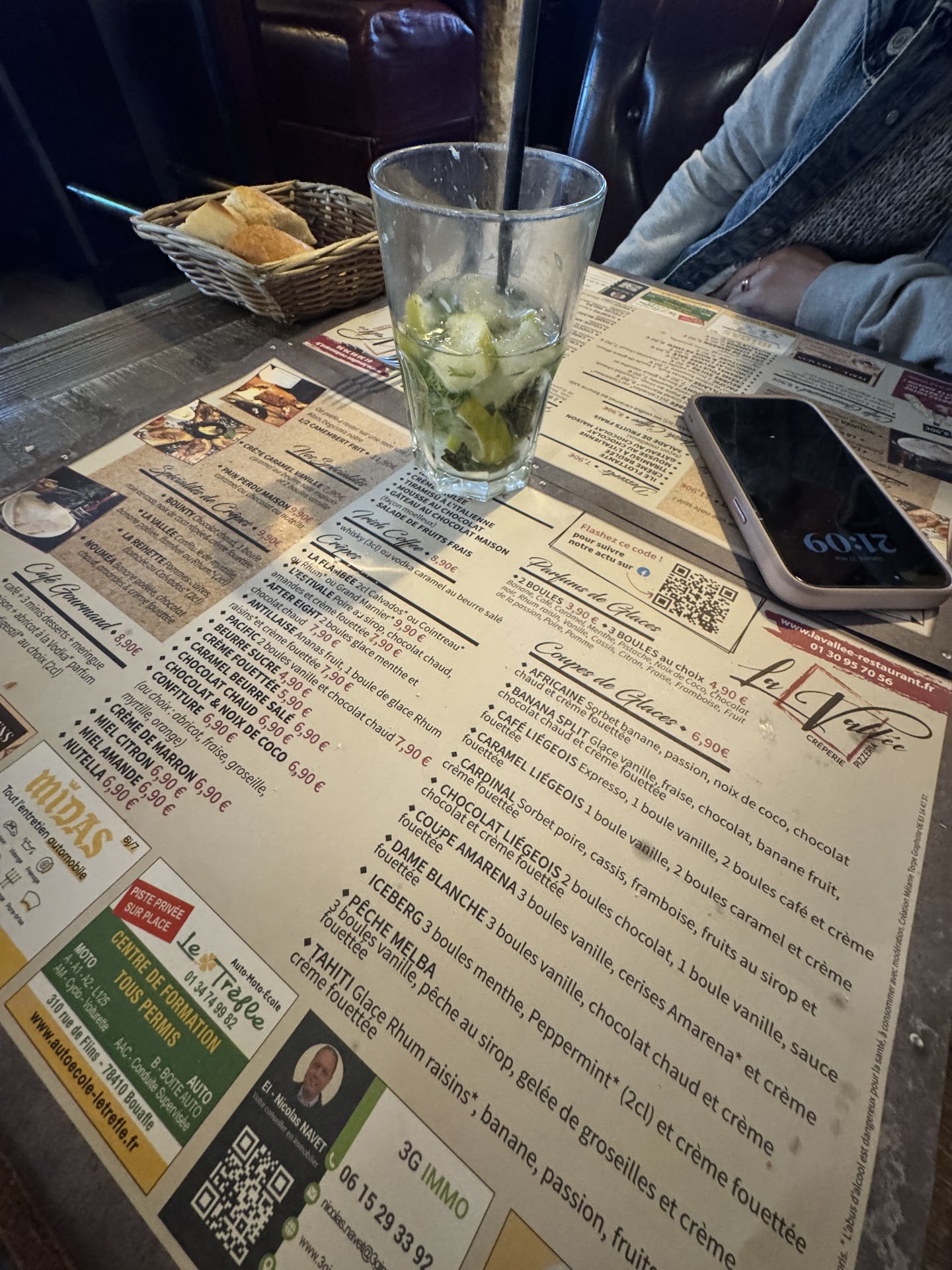J’ai fini par Appeler un autre restaurant savoir s’il était possible d’aller dîner au vu de l’horaire, et j’ai donc payé les deux Virgin mojito et notre camembert à partager, 28€, sans même avoir la moindre excuse, ni explication, ni ristourne…