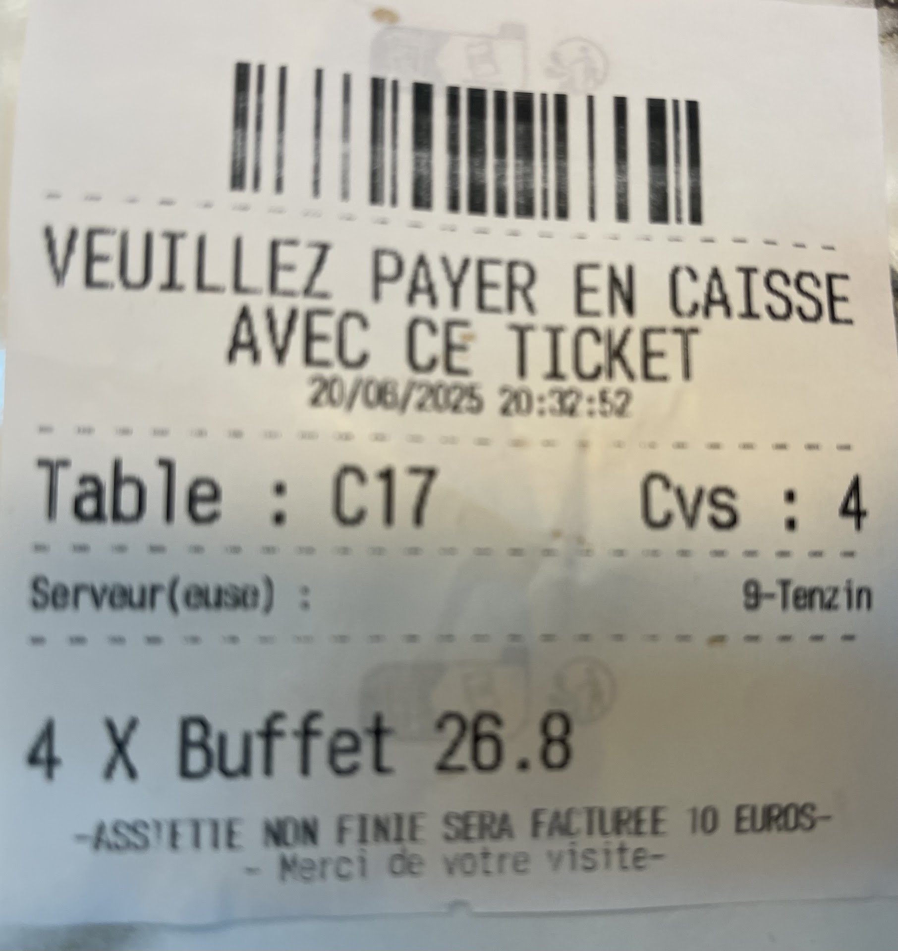 Premièrement, l’ambiance : autrefois fraîche et accueillante, elle est désormais étouffante. Il devait facilement faire plus de 30 degrés dans la salle. La climatisation, si elle fonctionne encore, est totalement inefficace. Dîner dans une atmosphère de sauna, ce n’est pas ce que nous attendons d’un établissement qui se veut convivial.