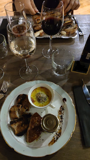 on donne la moyenne parce qu'il y a beaucoup de bonnes intentions , des idées créatives et d'assez bons produits (canard savoureux, vin du marmandais bon) mais cela nécessite quelques améliorations. la formule "tout feu tout flamme" est une chouette idée mais mon œuf cocotte était parfaitement cuit , celui de mon ami pas coulant, trop cuit. pde plus le fond fes œufs était un peu brûlé . les brochettes de canard étaient savoureuses et bien assaisonnées mais pas assez grillées, il a fallu s'y reprendre à deux fois. l'accompagnement était bon. le dessert, crème brûlée, bonne aussi. ma conclusions,, bons produits bonnes idées mais de petits ajustements à faire. une chose: il faut que les œufs sont bio et si c'est le cas, le préciser c'est important. en gros nous avons dîne agréablement . enfin le prix indiqué sur internet, pour un repas complet vin compris, il faut compter 50e par personne. nous avons été déçus que des gens accueillants et gentils annoncent des prix faux:30/40 ça n'est pas du tout ça, annoncez les vrais prix et le vin compris...
