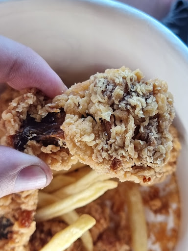 Read moreOn marche sur la tête... Autant le jeune homme qui prend les commandes: super sympa. Autant au guichet d'après on me remet ma commande. Avec ma soeur nous la vérifions, il manque les onions rings. Pas de souci, je retourne au guichet et le leur dit. La nana me ramène le sachet, je le prend et pars avec. Sans faire attention, j'en prend un pour grignoter: je réalise que ce sont des bouchées de fromage... Je retourne à nouveau au guichet. Les clients d'après et moi ont est amusés de la situation. Je lui tend le sachet: "excusez-moi, ce ne sont toujours pas des onions rings!", je dis en souriant. Et que me répond cette nana? Elle me gueule dessus!! "Ouais, bah maintenant que vous en avez mangé un, je peux plus les vendre, bravo! " Elle claque la vitre. J'hallucine, les clients aussi. Quand elle revient je lui dit que c'est pas grave que j'ai du revenir deux fois, ce n'est pas grave qu'elle ne se soit pas excusée, mais en revanche qu'elle me gueule dessus en plus c'est de la folie! Elle continue à me parler comme à un chien et me dit "en plus j'ai vu ma collègue vous mettres des onions rings" donc en plus elle sous entend que je mens et que j'essaie de gratter des produits.... Je lui répond que non, ils se sont trompés, d'ailleurs je n'ai pas de machine à fabriquer des bouchées au fromage dans ma voiture. Et là, elle me claque la vitre au nez à nouveau! Les clients et moi on hallucine à nouveau! OK, je n'y retournerai plus, KFC perd des clients parceque certaines employées ont visiblement oublié de prendre leur traitement et ont raté la formation "quand on se trompe on ne gueule pas sur les clients". Pauvre fille... la honte pour KFC des employées...