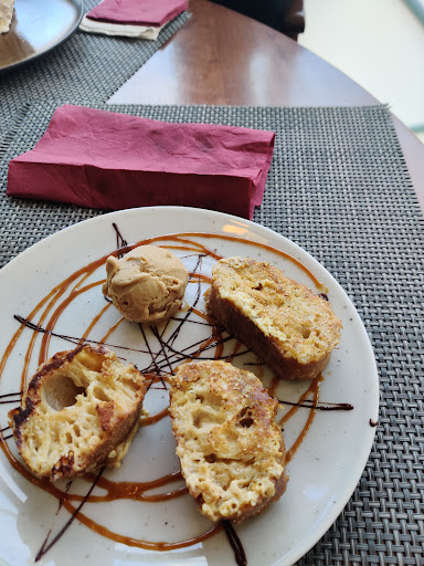 I dined here with my family, we came for lunch at 12 oclock. The restaurant looks nice and has a good atmosphere. My father ordered raw tuna steak salad, which he said was average. My mother, girlfriend and myself ordered a set menu (menu de marché) for €19 which includes a starter, main and desert. The set main was pork ribs, but what arrived was pork belly with the bone. It was very very tough and was just boiled with no salt or seasoning. I have had pork belly many times before and it is supposed to melt in your mouth if cooked correctly. But this was just a pale grey piece with no flavor and almost impossible to chew. The vegetables that accompanied it were also extremely bland and mushy. We told the waiter we would not eat this and that we wanted to order something else. He was not pleased but showed us the menu again, we ordered the duck breast which my sister had already ordered and finished eating by the time the waiter delt with our ordeal. The duck was very well seasoned and cooked. The restaurant made us pay for the full set menu as well as the duck breast we ate but they did not even give us our desert from the set menu. The restaurant could have good food but they need to have standards and the waiters need to be more pleasant when dealing with situations like this. We also seen a couple a table across order the same pork ribs which was actually pork belly and also not eat it. Not very pleased with our...