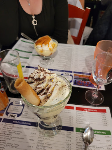 Petit restaurant sans prétention, à la décoration un peu passée mais au service agréable. La serveuse est gentille et ne chôme pas. Le menu E/P/D/café à 15euros n'est vraiment pas cher même si le choix est un peu limité sur les entrées. Ce n'est pas de la grande gastronomie, ici on ne cherche ni les paillettes ni à faire original mais à manger copieusement pour pas cher. Les pizzas sont petites mais vraiment bien garnies et la pâte, ultra fine et croustillante est étonnante. Ma fille a pris des spaghettis bolognaises et elles n'étaient pas terribles en revanche, sauce trop diluée. Les desserts sont simples et efficaces. Bon...