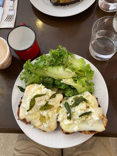 La carte est courte, très soignée. Superbes photos, papier de qualité, typo bien choisie — rien n’est laissé au hasard. Les plats principaux (entrées, salades, tartines, plats chauds) sont toujours proposés comme « plat du jour », expliqués avec plaisir par l’équipe — en français ou en anglais, selon votre préférence.
