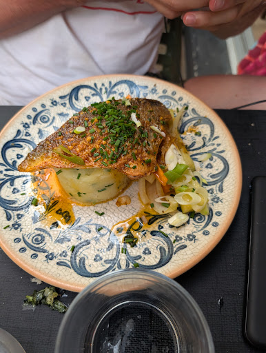 This place is in a busy street of Cassis, a very turistic place. We had dinner after the beach. Overall I would say it's good but nothing mind blowing. We had two starters and two main, we started strong with the starters which were delicious, I ordered mozzarella with ham and asparagus, very lovely dish, a bit strong on the garlic but still, I don't mind it, and my partner ordered octopus salad, which was good as well. As main we ordered the fish of the day and beef cooked in a very typical way for them. I asked for a suggestion and the waitress suggested to get this one as it was a typical dish from the place however it's a stew, which is definitely too hot and too heavy for the summer season. I couldn't finish it so I would have appreciated a better explanation of the dish before hand when I asked for the suggestion. With no drink we spent 42€ each which I think is expensive for the...