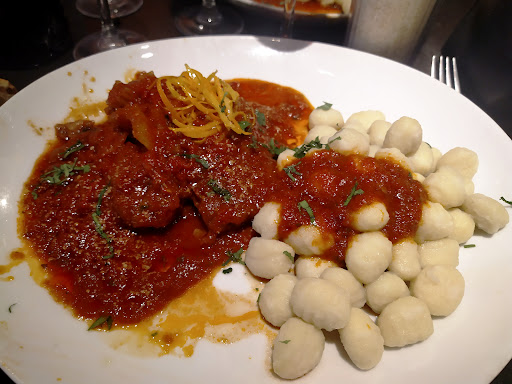 La nourriture Nous avons décidé de commander la viande de veau à l'os avec des gnocchi fondants, qui était accompagnée d'une sauce tomate et de parmesan. C'était vraiment délicieux ! Les gnocchis étaient fondants en bouche.