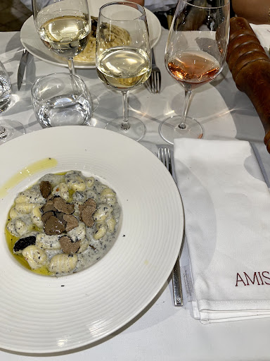 Read moreJe suis venu avec ma compagne, pour une note de 90 euros : plats, dessert, boissons (d'ailleurs cocktail très bon). Nous avons pris un risotto parmesan (sans le jambon) (mis appart les copeaux de fromage la sauce du riz n'avait pas le goût escompté, c'était un peu comme à la cantine du collège, en soit ça nous a rappelé des souvenirs). Et une entrecôte de veau avec jambon à la truffe et mozza gratinée. Le jambon beaucoup trop fin, c'était comme si il n'y était pas, pas de goût (autant mettre du jambon "nature" mettre une tranche épaisse et avoir un goût plus prononcé pour éviter un surcoût avec la truffe). Et le veau était assez fade, la mozza prenait le goût sur tout le reste (pour un fromage peu fort en caractère c'est surprenant de voir son goût dominer le reste). J'ai pris un supplément sauce au poivre avec ça, la sauce en elle même n'avait pas le goût, il n'y avait des gros grains de poivre qu'il fallait croquer. Donc un peu dommage qu'ils ne soient pas broyés directement dans la sauce. Sinon pour les desserts, la façon de présenter ça était sympa, mais la crème brûlée collait au palais, c'était dommage, assez écœurante. Et la sorte de crème caramel chantilly fruit rouge était décevante, énormément de chantilly, si on combinait la crème avec la chantilly on ne sentait que le goût de la chantilly. Disons que ce n'était pas assez bien équilibré. Sinon pour le cadre et l'ambiance il était demande une tenue correcte exigée mais il y avait des personnes en survêtement, sa coche sur le ventre comme dans un kebab. Mais sinon le restaurant était beau et le personnel gentil, souriant...