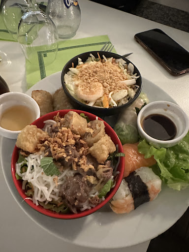 De l’entrée au dessert, tout était de très mauvaise qualité, voire immangeable pour certains plats. Le riz cantonais avait un goût de brûlé insupportable, les rouleaux de printemps étaient caoutchouteux, et la salade avec nems que j’ai prise avait un goût infect au point que j’ai dû recracher dans ma serviette. Ce n’est absolument pas dans mes habitudes, je suis plutôt bon public, mais là, c’était juste impossible.
