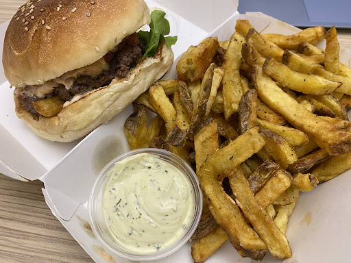 Read morebon burger, consistant avec beaucoup de frites (artisanal) bonnes également, sauce Barlou incroyable, MAIS, j'ai des choses à dire 😂 Premier truc, l'hygiène ; le sol collait, là où il y avait les boissons c'était pas propre derrière, moucheron collé sur la mayo, le meuble a l'arrière du gars il est écœurant tellement il est sale, et pomme de terre par terre à Marseille... Ça le fait pas. 🐁 Aussi faut changer l'huile des frites, parce que elles étaient bien foncées quand même. 2eme chose, les crudités, on s'est tapé de la salade un peu passée et une vieille rondelle de tomate premier prix, 1 tomate doit faire 6 Burger à peu près 🤣2 indous qui parlent quasi pas Français... Économie max. 3, trop de CO2, tout fermé avec la clim qui refroidi rien du tout, c'est pas possible. Rien contre l'artiste que j'apprécie énormément mais là, fallait que je le note comme un snack, et encore, c'est Seth qui a sauvé votre note, on va pas...