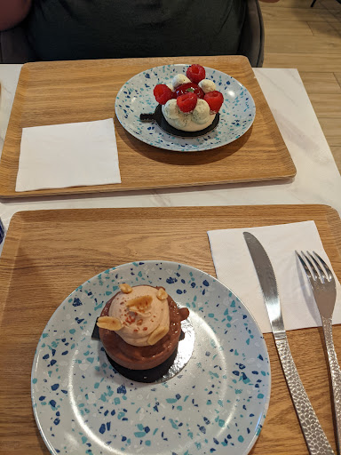 Read moreAmazing treats!!! They cost a bit more than some you might see at a boulangerie but are so worth it. Most treats were about €5-€6. Lovely air conditioned cafe seating out the back and some outdoor seating too. Really clean (including the toilet!) and modern cafe. Staff were all very friendly and welcoming. Would highly recommend visiting. Will definitely be back if we're in...