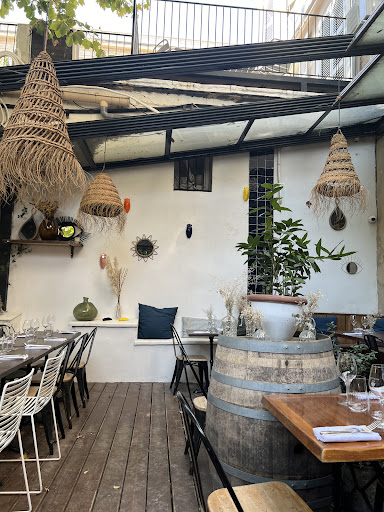 Read morePremière impression : sale (je passe les détails). Cadre négligé, "peintures" écaillées, même pas un minimum de décoration digne de ce nom. Dans l'assiette : pas mieux. Le magret se défend, la purée est froide, les brocolis durs et brûlés. Les desserts ne relèvent pas le niveau : figues pas mûres recouvertes de céréales chocolatées, morceaux de rhubarbe (pas vraiment confite) et grains de raisin Italia qui nagent dans une eau insipide. Dans les verres, la "sélection maison" correcte mais sans surprise, en direct du Saint-Esprit via un bib et facturée tout de même 5,50 euros le verre ! Pas de carte des vins, le comble chez un caviste. Quant à la carafe d'eau, elle est servie chambrée (26 degrés à l'ombre)... La tenue du personnel n'est pas nette et va avec le cadre : style "j'arrive de la plage et j'ai tout juste pris la peine d'enfiler une liquette". En résumé, 31 euros pour un plat, un dessert et un verre de vin au déjeuner, cela correspond en principe à un bon restaurant. En principe... Finissons sur une note positive : félicitations au rédacteur du menu. Celui-ci est particulièrement alléchant. Le "chef" peut y trouver un modèle... Bref ! Cet endroit vaut le détour, mais pour le contourner. Suffit-il de "cotiser" pour avoir la plaque...