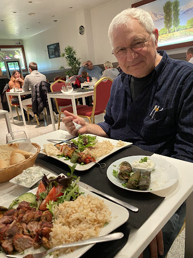 Visited on a Wednesday night as staying locally at the AC Marriott Velodrome. Did not book but were warmly welcomed and seated at 8pm. Menu is varied but we chose an armenian rose wine, which we enjoyed - delicate but flavourful and dry but not too dry. I had the mixed armenian plate and my wife had the chicken brochettes. The brochettes had a very delicate marinade, which was delightful. Chicken was moist but also had a char flavour and the salad, tzatziki, and pilau made delicious accompaniments. My plate had a tasty cheese pastry, stuffed vine leaves, pancake stuffed with beef and chicken kiev with hummus and similar sides. All was a delight, though the Kiev perhaps not quite what I had expected. The flatbread was some of the finest I've experienced around the world. If this is Armenian food I will definitely try it again and well done to the waiter who was busy but helpful...
