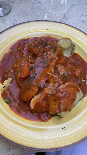 Restaurant-Roulette We immediately liked how tucked away, calm and thoughtfully the tables outside were arranged. We arrived at the same time than another group. We asked for a table for three. While deciding where to sit, the matriarch of the house quite out of context, suggested we should go to the kebab at ent end of the street if we are in a rush. Confused I answered that we were not in a rush. My friend wanted white wine but received red. After humbly asking for a an exchange things got worse. Our nemesis table had in Contrast to us a very pleasant chat with the boss and received nuts with their aperitif. Our main consisted of a rather small portion of overcooked bulgur with 1/4 of a fish filet. The flavor was great though. The true surprise came when the table next to us received the same dish but with a whole fish and nicely garnished. The boys on the other table laughed, winked and showed us their portion. This place is like a casino. Either she hates you or she loves you. Recommendations: take any table she gives you. Take any drink she serves. Come in a diverse group of...