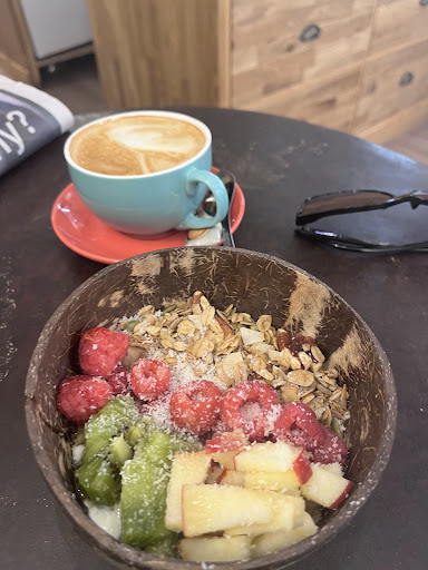 The granola bowl (with no banana) and a flat white was my regular order. At first the no banana request was greeted with confusion but by the second morning, it was expected! I also tried a slice of the carrot cake on day 2.