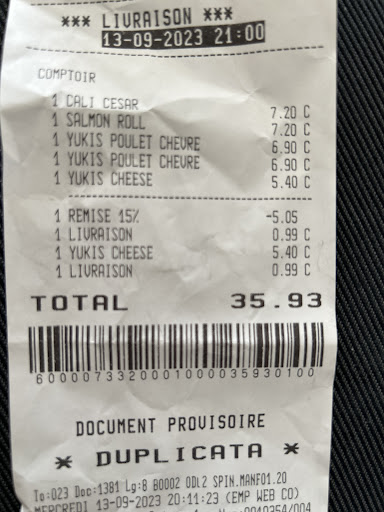 Read moreexcellent sushi 🍣 nous qui avons de la prévention par rapport au sushi car c’est assez compliqué à trouver des bonnes personnes qui savent les faire et surtout la qualité. Là nous avons la qualité et la bonne mains !! 😍 nous ne regrettons pas ! on c’est régalé. par rapport qualité prix je trouve les prix corrects pour ce qu’il propose, en plus de ça on a des avantages en commandant sur internet à tél nombre de commande et aussi -15% tous les mercredis c’est génial !!😉 Et si vous aller sur place vous ne serais pas du tout déçu par l’amabilité de la serveuse/(livreuse) et du cuisinier ! adorable ❤️ ça fait toujours plaisir de bien être...