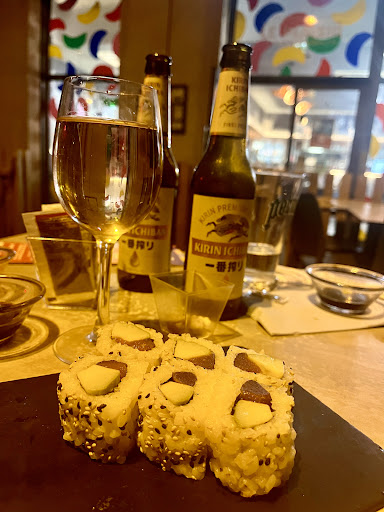 Arrivé frigorifié devant le resto en tout début de soirée ce vendredi soir: vu sur la salle avec alignement de tables et cuisines au fond. Première impression, celle d'être dans un fast-food japonais... Tant pis on rentre (on est 2). Accueil: le strict minimum syndical : un bonsoir avec un sourire. Pas un accueil méridional, mais pas un accueil froid non plus. L'ambiance sonore est correcte: des chansons connues reprises par ???, pas vraiment à mon gout, mais avec un volume sonore qui n'est pas envahissant. Une fois installé bien au chaud, je remarque les lampes en forme de poisson, j'aime beaucoup. On apporte les cartes, que je survole rapidement (les sushis me paraissent un peu cher ?) car je sais ce que je veux: un chirashi, soit du riz vinaigré sur lequel on a déposé des tranches de poissons crus. 15€90, c'est dans les prix dont j'ai l'habitude (entre 14 et 16€). Et là, ca commence plutôt bien: au lieu de la présentation traditionnelle, soit un bol de riz avec le poisson par dessus, quelque chose d'original: un bol de riz renversé entièrement tapissé de tranches de poisson. Seconde bonne surprise, les proportions: je suis convaincu qu'il y a beaucoup plus de riz que dans un bol classique. Quant au poisson, au lieu d'avoir des petites tranches épaisses, j'en ai de longues fines, mais au final j'ai l'impression que là aussi j'y gagne en quantité. Bref je me prépare à me régaler... mais la joie ne sera que de courte durée. Mais où est le riz vinaigré? Il y avait un truc a faire et à ne pas rater, c'était ça ! Le riz est vinaigré de manière homéopathique ! C'est fade, mais qu'elle déception ! Le poisson lui est frais, rien à dire, mais bon le plaisir n'est plus là. Alors certes, j'ai fini jusqu'au dernier grain de riz (je suis comme ca, faut rentabiliser), mais qu'elle déception. Si le riz avait été à la hauteur, j'aurais mis 5/5 au repas, mais là impossible. Le traiteur à l'intérieur de l'Intermarché des chartreux fait du riz vinaigré à la perfection, et c'est un exemple pris au hasard parmi d'autres... Alors accident de parcours ou pas ? Je n'en sais rien, mais je ne pense pas que je vais le savoir de si tôt, pas envie de prendre le risque d'une...