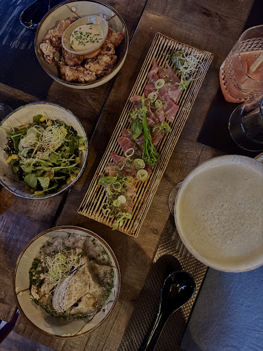 Ayant pris un tonkotsu 2 tranche de chashu 18,50€: servis dans un bol très étroit (donburi , tsukumen) un rapport nouille/ bouillon dérisoire (avec une petite quantité) le bouillon très sombre pour un tonkostu (même si c’est une base Shoyu) très liquide , pas laiteux et pas parfumé même avec le tare. Des nouilles fines surcuites qui n’ont pas pris le peu saveur du bouillon , 2 tranches chashu sans épaisseur (une charcuterie pour le prix de la poitrine porc/Kg ! ) très plat (pas salinité , umami) edamame presque pas blanchis même à les dents ayant du mal a sortis les fèves de la cosses , l’assaisonnement juste un condiment acidulé par-dessus plus orienté par le sumac a cause son effet plus citronné que le aka shiso « mentholé, floral » très sec en bouche. Sans sauce mayonnaise toragoshi ou soja tanoshi pour une style plus yatai izakaya pour le Karaage.