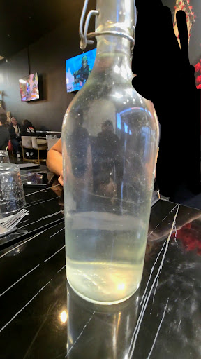Premièrement on va pour commander deja on recoit pas de menu ??! ( vous la sentez venir la ?? 😌 ) on nous dit vous etes venu grace a the fork donc regardez les menu sur the fork. Pas de problème donc moi et mon ami on commande Pate Carbonara ( 17€ ) et Forestiere ( 18€ ). Memorisez les prix ca a son importance ! Ensuite on recoit la bouteille d'eau ( bon on peut se passer de commentaire j'ai mis la photo 🤣 ya clairement de la semoule dedans , des requins bref ..) Ca c'est rien j'ai demander a changer ca a etait changer on leur en tient pas rigueur.