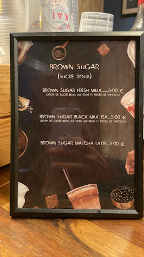 Les bubbles tea sont très bons dans l'ensemble. J'ai pu tester : Matcha latte et perles de tapioca sucre roux, le thé pour moi ne ressortait pas assez et il était un poil trop sucré. Brown sugar fresh milktea était tu lui super bon, un bon équilibre entre le thé et la dose de sucre.
