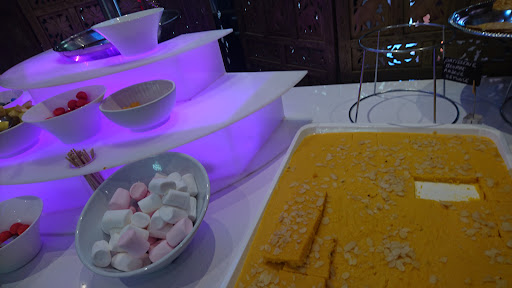 Read moreJây suis allĂ©e rĂ©cemment accompagnĂ©e dâune amie. Nous avions rĂ©servĂ© donc nous nâavons pas beaucoup attendue. Nous avions bien Ă©tĂ© accueillis et rapidement placĂ©es. Le buffet Ă volontĂ© proposĂ© est trĂšs variĂ©. Avec des apĂ©ritifs/entrĂ©es oĂč lâon vous proposera divers spĂ©cialitĂ©s Houmous, caviar dâaubergine, tapenade, salade accompagnĂ© de fromage (brie) ainsi que du pain Ă disposition. Il y a un coin oĂč lâon peut rĂ©cupĂ©rer son pain Naan ( 1 par personne) oĂč lĂ encore nous avons le choix parmi 4 types de naan (nature, cheese, ail et persil) mais Ă©galement la possibilitĂ© de commander des grillades Ă volontĂ© et lĂ aussi le choix est variĂ©s. (Poulet curry, tandoori, steak hachĂ©, merguez). Parmi les plats proposĂ©s il yâa du riz blanc avec plusieurs sauces (butter chicken, tikka massala,tandoori, tikka), des falafels, des samoussas, le choix ne manque pas. Pour les desserts, ils disposent dâune fontaine Ă chocolat avec des fruits (banane, clĂ©mentine, prune, raisin blanc) ainsi que des bonbons. Il y a Ă©galement des machines Ă glaces avec plusieurs parfums (vanille,mangue,pistache, citron) et quelques gĂąteaux de la cuisine orientale. Malheureusement nous y sommes allĂ©es un samedi soir donc plein tarif 25,90⏠par personne sachant que jâai pris un cocktail ce qui fait que jâen ai eu pour 34,90âŹ. Je trouve cela cher malgrĂ© le buffet Ă volontĂ© les prix restent Ă©levĂ©s et cela nâa pas Ă©tĂ© rentable...