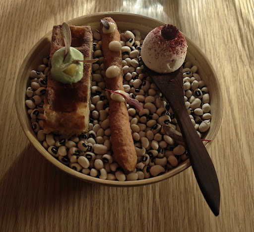 The dishes served are always a pleasure to look at and a lot is put into making them as aesthetically pleasing as possible. The food is exquisite. Even if some of the spices/tastes used are familiar, the combinations in which they're used always end up resulting in something new and surprising, so it's a nice process of discovery.