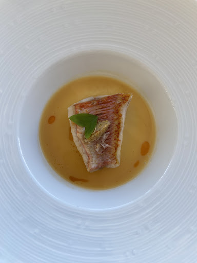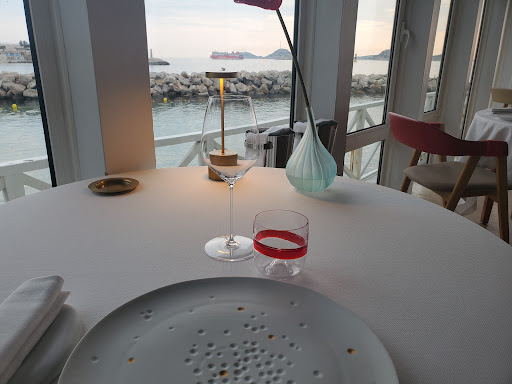 Die Auswahl des Weins wurde bereits vor der Wahl des Menüs vom Sommelier bestimmt. Seine Empfehlung galt einem komplexen Weisswein, der hervorragend zu jeder Menüwahl passen sollte. Das hätte mich bereits skeptisch machen sollen. Grand Vin de Malherbe, Vin blanc, 2020. Es folgte die erste Enttäuschung: Von den drei angebotenen Menüs durften wir nicht jeweils ein 5- Gang und ein 7-Gang-Menü bestellen. Wir sollten eine gemeinsame Menü-Auswahl treffen. Es wurde begründet, es sei in diesem Restaurant nicht realisierbar. Nun gut, wir wollten uns zu diesem ersehnten Abend nicht betrüben lassen. Wir folgten also der Empfehlung von Florian. Er begründete seine Empfehlung, das Menü "Bouilliabaise" in 5 Gängen sei die Visitenkarte des Restaurants... Mein vorausgegangener Wunsch in meiner Reservierungs-Email, der Tischposition in der ruhigen Ecke nachzukommen, wurde kommentarlos ignoriert. Nicht so schlimm, denn die Lage des Restaurants, seine Aussicht und die Plätze scheinen alle gut, wenn Essen und Atmosphäre stimmen würden. Die Tischposition hatte aber zur Folge, dass wir als erste Gäste des Abends mittig platziert wurden und das gesamte Treiben der Belegschaft zwangsläufig verfolgen mussten. Vier, vermutlich auszubildende, junge Mitarbeiter servierten hastig und ratterten die Kreationen in einem atemlosen Tempo von ihren Lippen. So bewegten Sie sich auch, voller Hektik, im gut gefüllten Restaurant. Nach wiederholter Bitte unsererseits, das Tempo der Darreichungen zu entschleunigen, beherzigte Florian diesen Wunsch endlich. Das kleine Rotbarbenfilet auf dem Grund der tiefen hölzernen Schüssel war aufgrund des tiefen Schattens der Schüssel nahezu nicht würdigbar und musste mit der Tischleuchte illuminiert werden, um es am Grund der Schale sichtbar zu machen. Der zweite Gang hatte es einfacher, gesehen zu werden, da er zentral platziert wurde, und der vulkanförmige Teller die Sichtbarkeit des einen kleinen Ravioli erleichterte. Der dritte Gang war die durchschnittliche Suppe selbst, die einer Visitenkarte dieser Restaurantklasse mehr als unwürdig scheint. Zwischen den Gängen rotierte das Team stets mit drei Sorten Brot zur Auswahl. So auch zum vierten Gang, den Fischfilets, die in einer inspirationslosen Sauce von selbem durchschnittlichen Geschmack dargereicht wurden. Jede Darreichung erfolgte von den gleichen durchexerzierten zackigen Bewegungen, um den Zeitplan einzuhalten. Dieser Zeitdruck und die angespannte Atmosphäre innerhalb der Equipe waren zum ungenügenden Essen höchst unangenehm. Diese Kritik, die ich auch an Florian spiegelte, wurde lediglich mit Worten des Bedauerns entgegen genommen, dass die Touristen seinen Boulliabaise Menüvorschlag normalerweise geniessen. Eine Entäuschung von Anfang bis Ende für uns - zu einem Preis von wertvollen Abendstunden unseres Urlaubs in Marseille und 340 Euro.