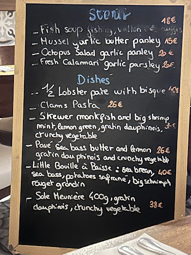 I dont know if this place has changed since it got this amazing reviews, but unfortunatelt it felt to me like a tourist trap, let me explain, we got the classic buillbaise soup which was 36 euros, the soup was so bland that any other fish soup would knock her out, part of this was that there where no other ingredients (at least in my plate) other than a huge prawn (which was soft fresh and delicious) and 3 huge potatoes, compared to any other dish we had in our trip it felt like a rip off, the wines were sold by the bottle only, except one kind so if you didnt want that one you had to buy the bottle, cheapest 26 euro, the wine selection is great, but only able to buy bottles is weird specially if you are a small party, the fish and shrimp skewer was good but again lacking flavour, particulalry in the fish although you can tell theybuse very fresh seafood (theyre like 200 m away from the ocean). We didnt even bother to order dessert for the above mentioned reasons, overall ok but ridiculously overpriced in my opinion.