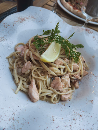 Par où commencer... De base, nous ne devions pas manger ici, le restaurant que nous avions choisi était exceptionnellement fermé le soir. Alors oui le cadre est magnifique, manger sur la terrasse avec la vue c'est plus qu'agréable. Mais en ce qui concerne la nourriture... On était vraiment déçues. Nous voulions manger un aïoli qui était indiqué sur la carte à l'extérieur du restaurant. Au final, une fois installées, pas d'aïoli en semaine (nous étions un mercredi), que le vendredi. Nous avons donc commandé une pizza arménienne à 17,50€ (!) Et des linguine au saumon à 16,50€ (frais selon la serveuse, donc ça donnait envie). La pizza n'était pas du tout garnie et bon, on nous annonce de la viande hachée marinée aux épices arméniennes... C'est surtout de la viande hachée de qualité vraiment basique. Les plats sont insipides, c'est bien la première fois que nous mangions quelque chose sans goût ! On sentait bien une texture en bouche mais sans goût. J'ai tenté de rajouter de l'huile piquante à pizza dans mes pâtes mais ça n'a rien changé, ni même sel/poivre. Au moins le repas a été cohérent puisque niveau dessert c'était pareil. Crêpe beaucoup trop cuite, gaufre qui s'effrite, beaucoup trop cuite et pas de qualité c'est certain. 56€ pour juste manger et avoir quelque chose dans l'estomac car là clairement on n'a pris aucun plaisir. Ce n'est pas un restaurant....