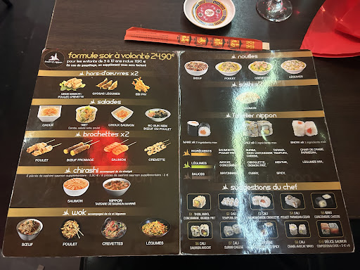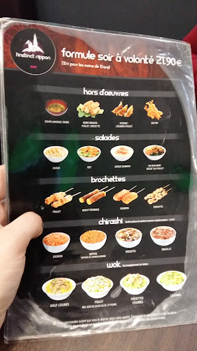 Honestly Itâs one of the creepiest cheap place I have been in my whole life. Very little choice of the menu, I attached the photo. The rolls were ok, but there was too much rice (but yeah itâs an all you can eat, what can you expect?) The salmon chirachi was smelling bad, not fresh at all⊠I couldnât finish it because I felt I could vomit at any time. I didnât continue âmy adventourâ at lâInstict Nippon⊠I was too scared to get seriously sick and not tempted to the cooked options. I also found the sweet soy sauce weird⊠it wasnât the classic one with a different consistency and texture..