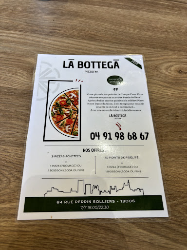 Read moreExcellente prestation: toutes les pizzas sont délicieuses, ainsi que les salades, et les desserts. En effet, tous les produits de "la bottega" sont toujours frais et bien appétissants !!!! De plus, l acceuil, le service , et les délais de livraison sont à l image de l ambiance générale, à savoir une parfaite bonhomie, et ce , à l effigie de cet annonceur formidable !!! En conclusion, " la bottega" répond aux attentes de la clientÚle, grùce à une chaleur humaine inégalable !!!! De plus, Avec " la bottega , reinventez la tradition de vos pizzas ". Bien...