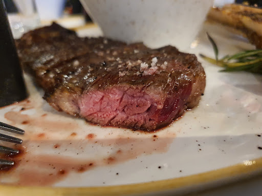 We started with a Safran risotto. The meal was a thick lump of pudding. Overcooked, without bite and taste. It was served with some small pieces of fried, dry old (maybe frozen) fish. It was the only non-meat dish on the menu, so they knew what they were doing. We gave a remark to the waitress. She told us that we shouldn't eat fish in a meat restaurant. We thought It would be a good starter before we got our meat.