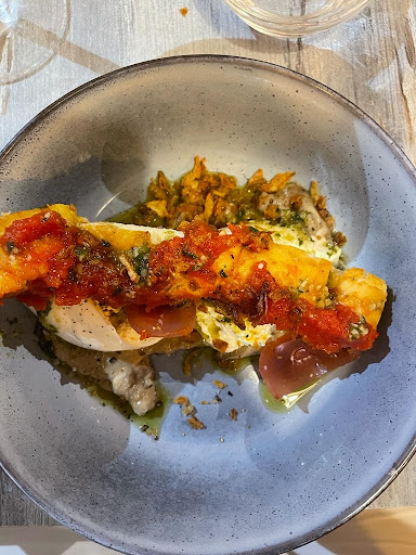 Surprising and delicious limoncello spritz proposed by our fantastic waiter/owner. Burrata with anchoiade and pan con tomato / small fish soup to start (both so memorable!)