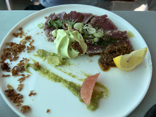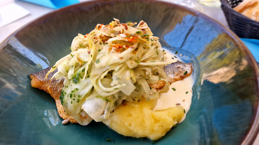 Read more10 stars for location and view. Also for the guys running the place. The kids ordered steak frites so I can’t rate that but it was good for them at least. I shared the burrata plate and the Cod with mashed potatoes. As far as the very common burrata plate... they did an exceptional job with fresh cantaloupe and tomatoes. The cod was a 5 Star plate all day long.... presentation was amazing and the sauce was perfect. And.... the mashed potatoes were done beautifully.