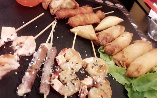 Read moreA fuir!!!! Nous sommes arriver à 20h20, le serveur nous prend les commandes de boisson (uniquement des soft en canette) et nous explique le concept nous "vend " le luxe des menus a 24.90 hors boisson et dessert, nous prend une 1er commande (principe du à volonté service à table) avec un panaché de friture pour nous faire découvrir 2 mini bol de nouille et des makis c'est arriver assez rapidement, 1ere impression cool... une fois finit nous avons attendu plus 1h15 pour qu'on viennent nous redemander ce que nous voulions, entre temps toujours les mêmes table servie... Mon homme commande 4 brochettes de fritures et moi 1 show (servi toujours par 8 pièces ) et on attend, et on attend on commence réellement à perdre patience, le serveur nous ramène 2 sushi qui ne sont pas les nôtres on lui signal et on attend... l'assiette de mon homme finit par arrivé et moi on m'a oublié... on signal. Du coup c'est parti pour attendre encore des plombs, la serveuse passe de temps a autre pour me "rassuré" que sa aller arriver. Voilà apres 20 minutes la serveuse me pose l'assiette avec son plus grand sourire et des excuses sauf que ce n'ai pas ce que j'ai commander mais je lui di qu'au point où on en est je garde et elle s'excuse encore.. ni une ni 2 je mange en rapidos jen avait réellement marre et on va régler. Il est à ce moment précis 22h43. Donc 2h23 dans ce resto pour une 20aine de friture 2 mini bol de nouille et 5 assortiments de maki/sushi.. Faudrait que l'on m'explique le concept de "à volonté" si entre chaque prise de commandes sécoule plus d'1h sans etre servie. La digestion a largement commencer et tu n'as plus faim. 0 organisation. Venons maintenant à la médiocre qualité. Les fritures à par le goût de l'huile yavais rien à découvrir. La brochette de tempura elle ne tenait même pas droite tellement que c'était gorgé d'huile, nems poulet/crevette je cherche encore le goût, les makis sont très faiblement garni, le riz fade et rien ne ressemble aux photos. Bref vous l'aurez compris ne perdait ni votre temp, ni votre argent. En plus musique beaucoup trop forte. Tous pour...